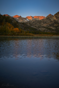 It was a very peaceful location, only broken by a couple of photographers across the lake bickering and fighting for their piece of ground to shoot from! There was a very slight breeze creating ripples on the surface and a bit of mist rising off the water on the far shoreline. The skies were cloudless, so no drama there, but the fiery glow as the first rays of sunlight hit the high peaks was absolutely fantastic! There is something truly special about the Eastern Sierra glow that is not found in other mountain ranges that I have seen.